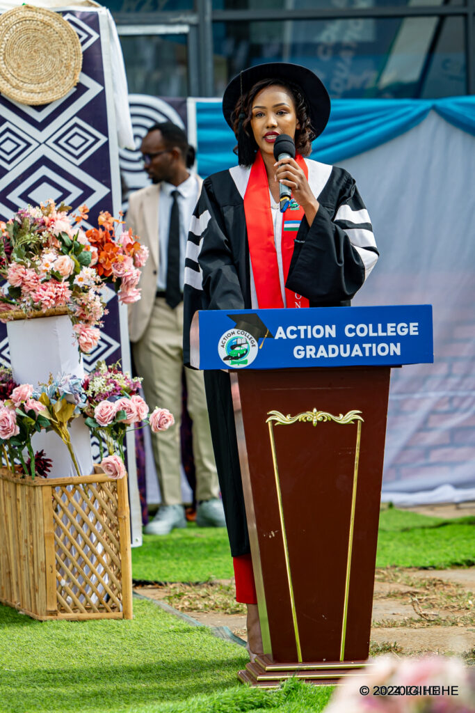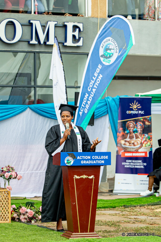 Ati “Ndashimira Action College, abanyeshuri barangije muri iri shuri n’ababyeyi baharerera. Nyuma y’ibyo ndashmira ubuyobozi bw’igihugu cyacu budahwema gufasha mu iterambere by’umwihariko umugore ku isonga”.